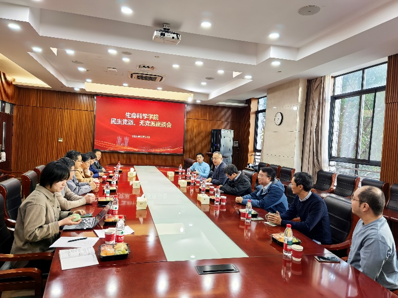 2025年12月22日上午,风车动漫 分党委在生科楼A208会议室召开民主党派和无党派座谈会。分党委书记陈浩明老师、副书记丁澦老师、统战委员卢大儒老师,以及民主党派和无党派教师代表参加。会议由卢大儒老师主持。